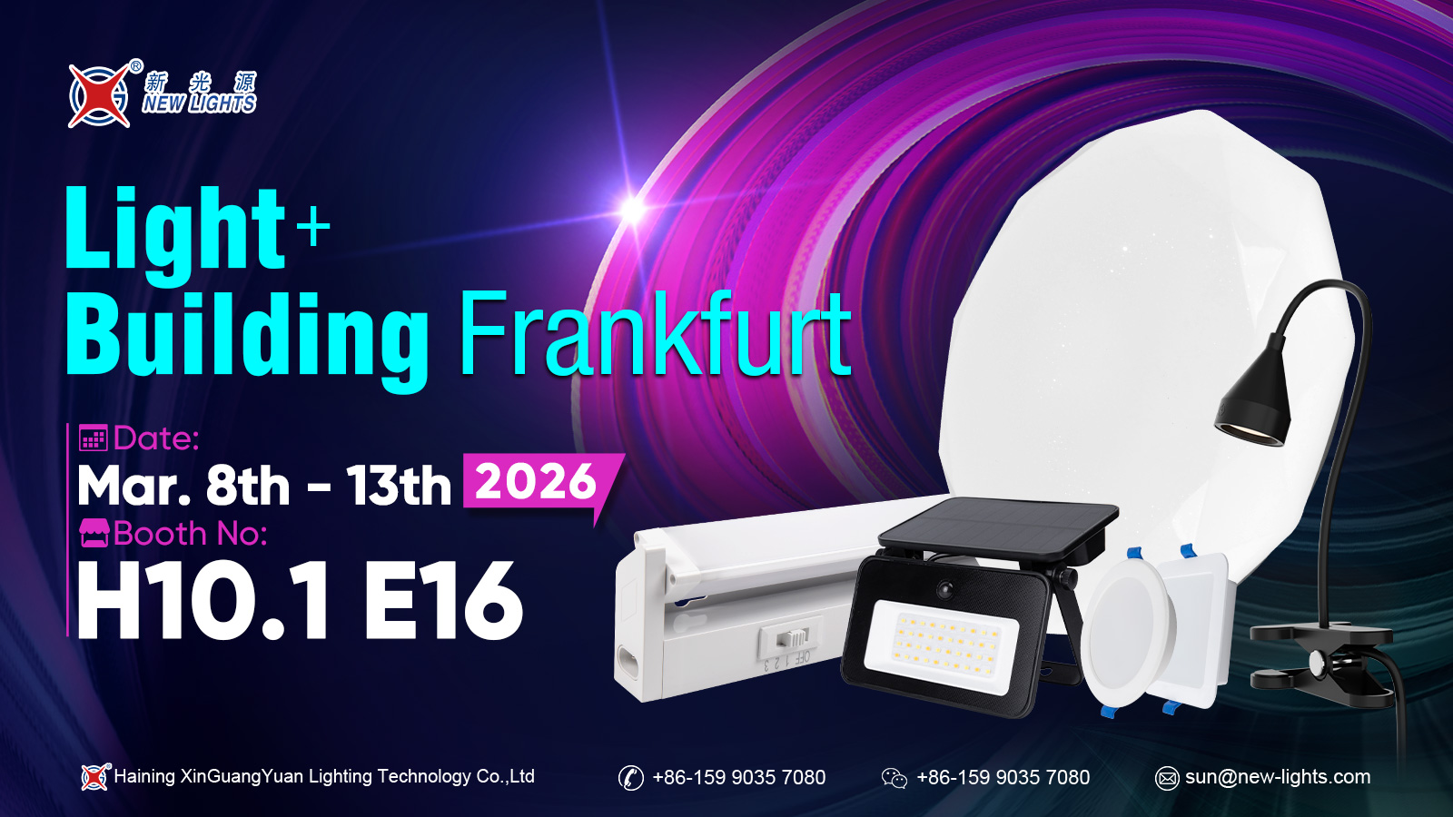 شرکت فناوری روشنایی Haining Xin Guang Yuan با مسئولیت محدود در نمایشگاه بین المللی نور در فرانکفورت آلمان شرکت خواهد کرد. 8 مارس تا 13 مارس 2026 . این شرکت نمایشگاه خواهد داشت غرفه H10.1 E16 . در طول این نمایشگاه، Haining Xin Guang Yuan Lighting Technology Co., Ltd آخرین فناوریهای نورپردازی و راهحلهای محصول خود را به نمایش میگذارد و در تبادلات عمیق با متخصصان و شرکای صنعت از سراسر جهان شرکت میکند. بازدیدکنندگان می توانند برای بحث و گفتگو و فرصت های همکاری در غرفه توقف کنند.